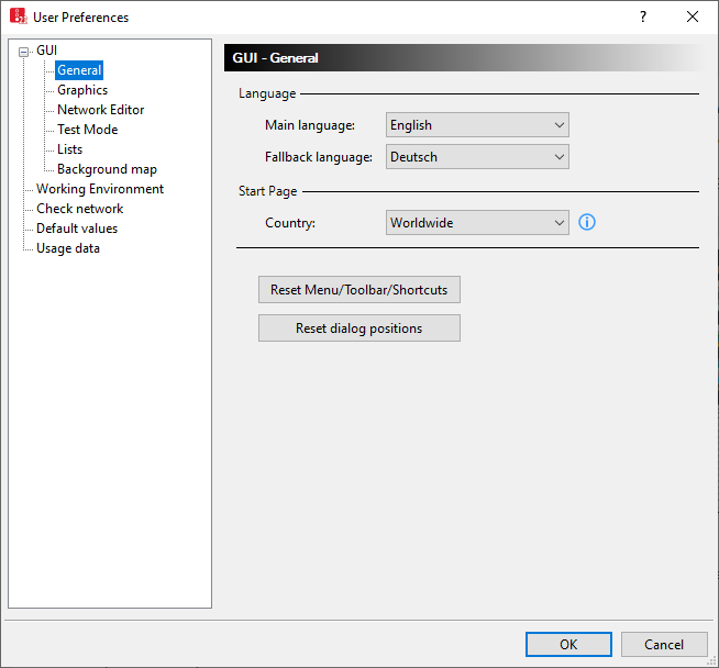 言語設定は保存され、プログラムエレメントおよび出力ファイルで使用されます。[Main language]‐[メイン言語] は、次回Vissimを開いたときに再度使用されます。