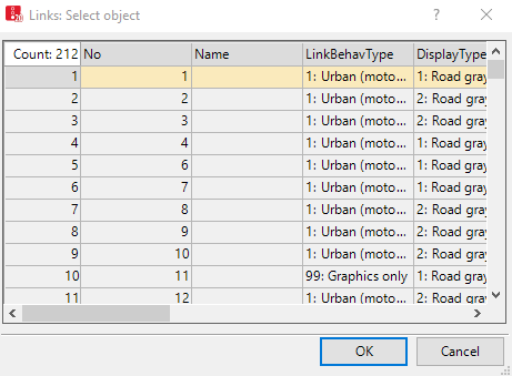 ウィンドウ [<Name Network object type>]-[<ネットワークオブジェクトタイプ名>: オブジェクトの選択] が開きます。下図は、参照オブジェクトタイプの [links]-[リンク] を選択した例です。