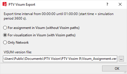 4. [For visualization in Visum (with Vissim paths]-[Visumでの視覚化用(Vissim経路付き)] を選択します。