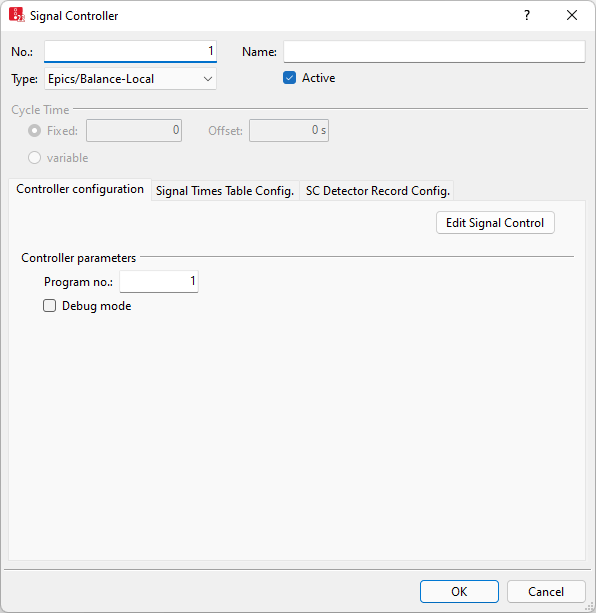 [Program no.]-[プログラム番号] | ProgNo:シミュレーションされる信号プログラム。シミュレーションの実行がシングルステップモードの場合は、プログラムの変更が可能です。[OK] で新しい信号プログラム番号を確定すると、次のシミュレーション秒で切り替えがトリガーされます。 |