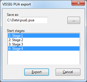 6. [VISSIG PUA export]-[VISSIG PUAエクスポート] ウィンドウで、[Start stages]-[開始ステージ] を選択します。