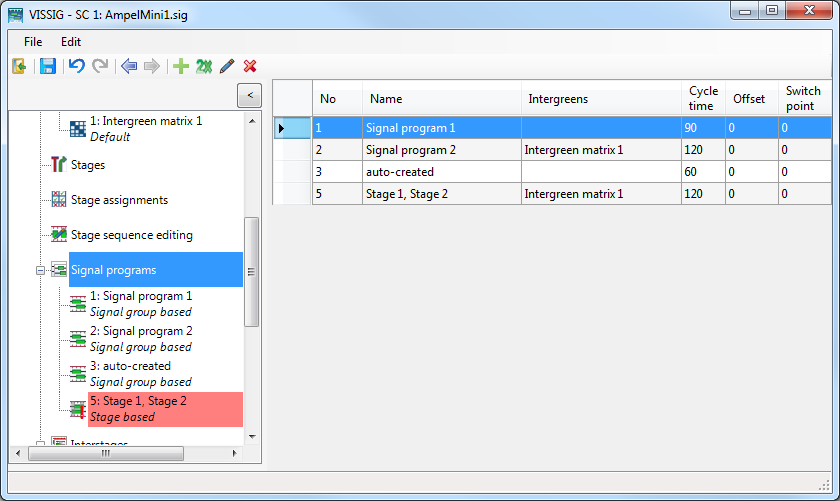 - 信号グループベースの信号プログラム。これらは、概要テーブルで作成できます。