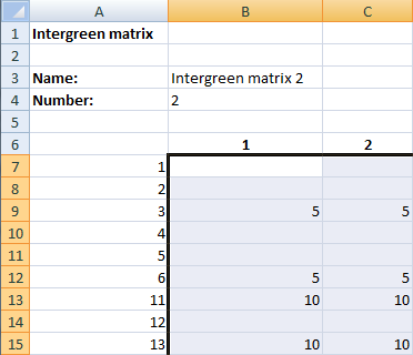 Microsoft™ Excel™から青信号の間隔値をインポートできます。たとえば、Excelワークブックをエクスポートしておくと、コピー&ペーストを使用して、青信号の間隔マトリックスのデータを新しいマトリックスや既存のマトリックスに挿入できます。