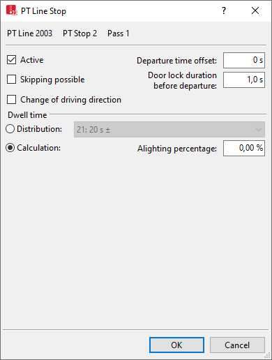 [Dwell time definition]-[滞留時間定義] は、公共交通の停止時間の計算に使用される方法によって異なります (停止時間分布に応じた停止時間の定義)、(高度な乗客モデルに応じた停止時間の計算)、(PTV Viswalkを使用した停止時間の計算) |