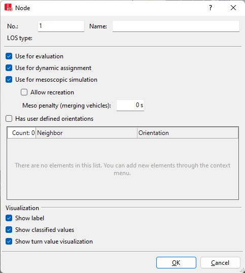 ノードの編集または新規ノードの挿入時に、Vissimは、次にシミュレーションを実行するノードタイプに基づいてすべてのノードの [LOSTyp]-[LoSスキーム種別] を定義します。 |
