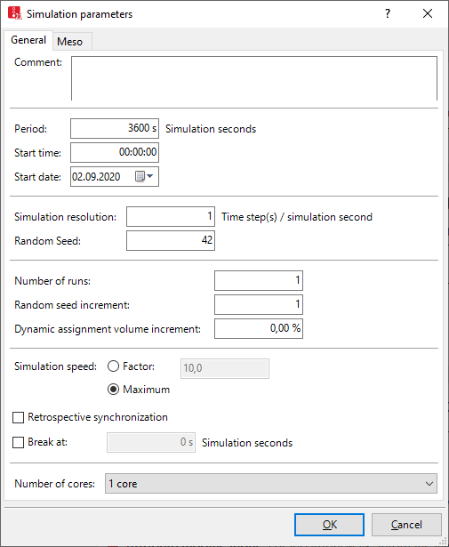 シミュレーション中に使用されているプロセッサコアの数。使用されるコアの最大数は、お使いのコンピューターによって異なります。次のシミュレーション実行を開始する際もこの設定が選択されたままとなります。 デフォルト:すべてのコアを使う 選択したコア数は、ネットワークファイル*.inpxに保存されます。この設定をシミュレーション実行中に変えることはできません。