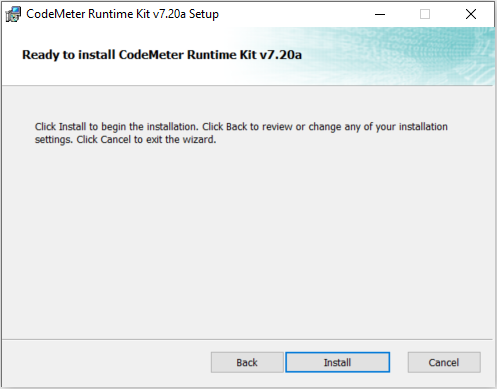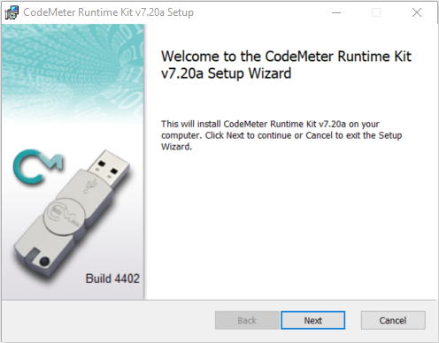 [License Manager]-[ライセンスマネージャー] をインストールすると、[CodeMeter Runtime Kit <version number> Setup]-[CodeMeterランタイムキット<バージョン番号>のセットアップ]ウィンドウが開きます。