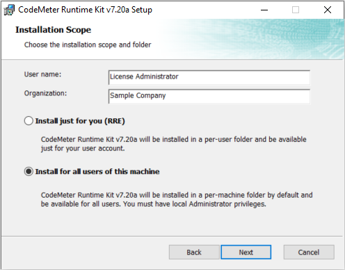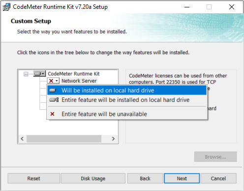 1. Setup_LicenseManagerServer <バージョン番号>x64.exeファイルをインストールし、CodeMeterランタイムキットもインストールされていることを確認します。