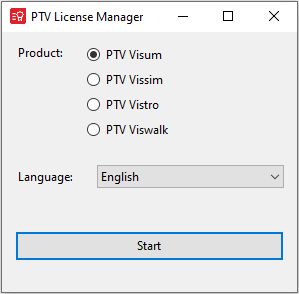 1. Windowsの[スタート]メニューから、希望する[PTV License Manager]-[PTVライセンスマネージャー]ツールのバリアントを選択します。