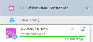 symbol in the task bar. You can open the tool's user interface during the data upload to PTV Hub to check the progress and success of the upload. The tool's interface does not open automatically.