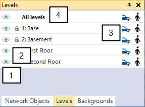 From the shortcut menu, you can choose to open the Levels list (Defining levels).