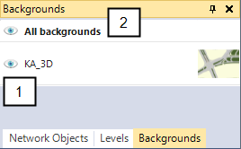 - Button is colored and open: background is displayed in the Network Editor. The visibility of backgrounds must be activated in the network object sidebar.