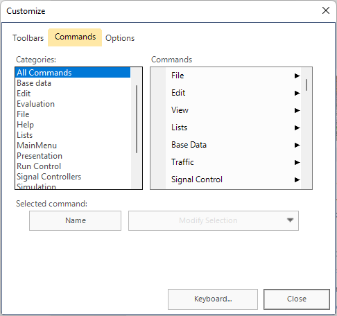 Note: Changing program elements or hotkeys can make it more difficult for you to find and use commands. The documentation and the PTV Vision Support assume that the standard settings are used.