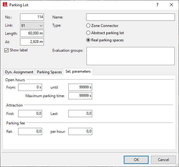 These attributes are only relevant for parking lots of dynamic assignment (Defining parking lots for dynamic assignment).