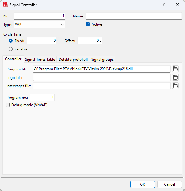 The *.vap file with the signal controller program logic for a VAP control. Make sure that the end symbol is in the last line of the VAP code. Otherwise, the VAP code may be generated incorrectly or not at all. |