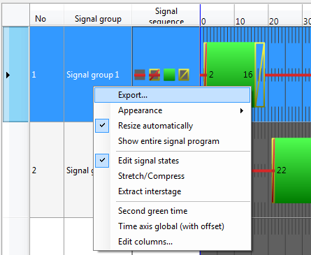 You can export stage sequences, signal programs and interstages as graphic files. You can format graphics in the signal controller editor. On the Edit menu, click Options. Then click the Export tab.