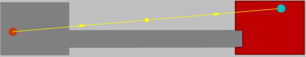 A yellow band with a yellow dot in the middle is shown by default between the first routing point of the pedestrian route and the destination.