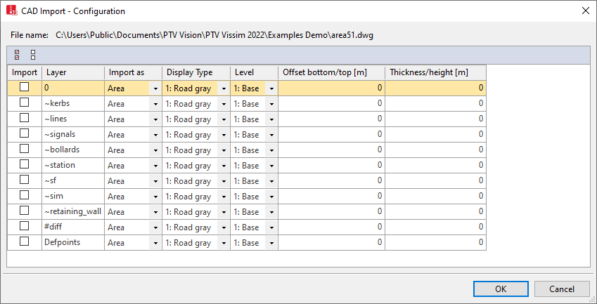 Select Level from Vissim for the CAD levels from the *.dwg file. The level has to be defined in Vissim (Defining levels). |