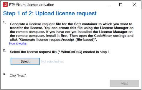 1. In the Step 1 of 2: Upload license request window, click the How it works hyperlink.