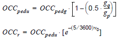 The pedestrian occupancy rate OCCpedg is derived from the volume. The following applies.