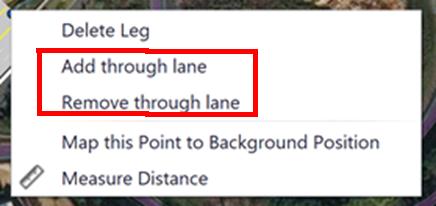 Note: If poly points are added to your intersection leg and you wish to keep these poly points, adding an intersection via the context menu will save the poly point locations. If you add an intersection adjacent to a leg, then connects legs together, any old poly points between legs will be deleted, as the legs between these intersections are redefined when connected. |