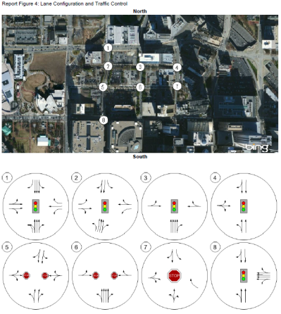 This figure presents the lane configurations and intersection control device icons.