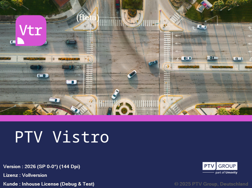 Once PTV Vistro has been started, the start screen appears providing the program version while the program is loading.