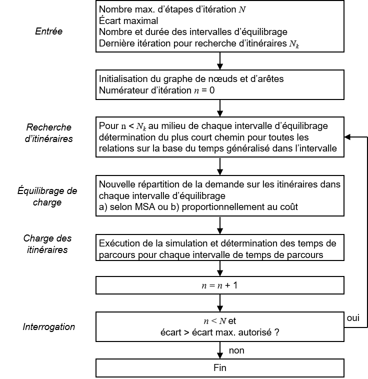 L’affectation dynamique basée sur la simulation (ABS) est une procédure itérative qui englobe les étapes suivantes :