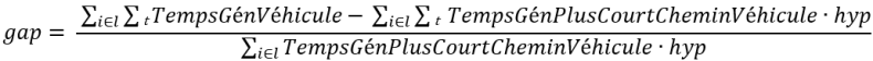 La vérification de la convergence est effectuée à l’issue de la simulation au cours de laquelle les temps généralisés sont mis à jour sur la base des temps de parcours nouvellement déterminés. L’écart relatif est utilisé au titre de critère de convergence en tenant compte des résultats par intervalle de temps d’équilibrage. L’écart est calculé comme suit :