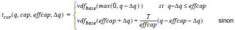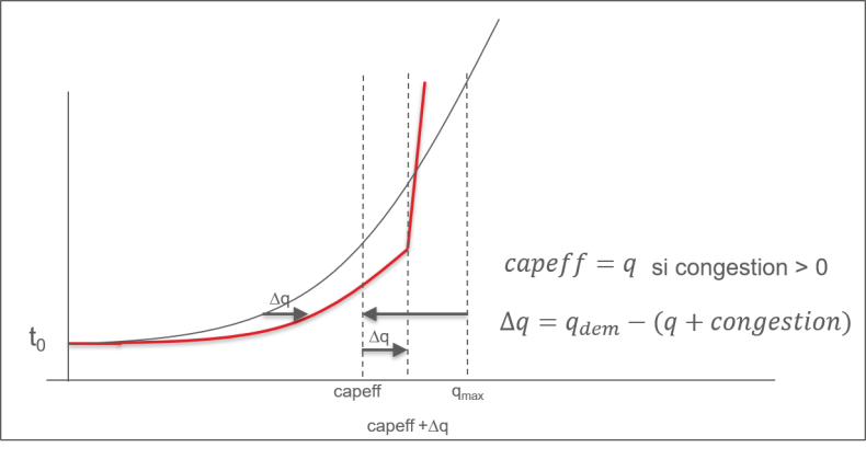 - Ajustement du tracé de courbe pour les valeurs de charge supérieures à la capacité effective, résultant de temps d’attente supplémentaires en congestion