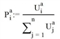 2. Le pourcentage de la demande de déplacements Pia est calculé à partir de cette utilité Uia (où n représente le nombre total d’itinéraires).