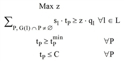 La première contrainte annexe exprime que la part z de la charge de chaque groupe de voies dépend des temps de vert des phases disponibles pour ce groupe. La part z est maximisée.