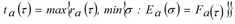 L’équation [33] peut alors être expliquée comme suit. S’il n’existe aucune congestion à un instant t donné, le temps de déplacement est identique au temps de déplacement sous-critique, de sorte que l’écoulement cumulé est égal à l’afflux cumulé à l’instant ra-1(τ), en s’appuyant sur la règle FIFO [35] (un véhicule qui s’engage sur l’arc à l’instant ra-1(τ) le quitte à l’instant t). Si une congestion se forme à l’instant s < t, l’écoulement correspond en revanche à la capacité d’écoulement de cet instant jusqu’à l’instant de résorption de la congestion. En s’appuyant sur la règle FIFO, l’écoulement cumulé Ea(τ) découle alors de l’afflux cumulé à l’instant ra-1(σ) en additionnant l’intégrale de la capacité d’écoulement entre σ et t, c.-à-d. Ψa(τ) - Ψa(σ).