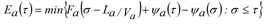 Si toutefois il existe un goulot d’étranglement à la fin de l’arc avec une capacité variable dans le temps Ψa(τ) ≤ Sa pour chaque instant σ, on détermine dans un premier temps la distribution temporelle de l’écoulement cumulé, dont la valeur Ea(τ) à l’instant t est définie de la manière suivante.