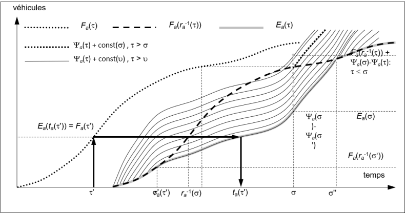 Cela signifie qu’entre les instants σ et τ, Ψa(τ) - Ψa(σ) véhicules peuvent quitter le tronçon.