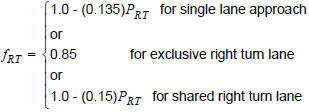 PRT et PLT sont les parts de tourne-à-droite et de tourne-à-gauche du groupe de voies, PRTA et PLTA les parts permises de tourne-à-droite et de tourne-à-gauche (par rapport au nombre total de tourne-à droite et de tourne-à gauche du groupe de voies respectivement).
