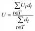 Le dénominateur comprend l’utilité totale de l’intervalle de temps, abrégé Ut. Contrairement aux indicateurs de liaison moyens, Ut s’améliore avec chaque liaison ajoutée à l’offre de transport. C’est la raison pour laquelle Ut moyenne pour tous les intervalles de temps est affichée comme indicateur propre.