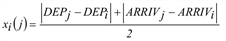 Si on utilise l’indépendance dans le cadre du choix de liaisons, cet attribut doit être intégré dans le modèle de répartition. Dans la version ci-dessus, on a calculé l’utilité Uia d’une liaison i pour chaque intervalle de temps a et on en a déduit le pourcentage de la demande de déplacements dans l’intervalle de temps qui lui revient. Lorsqu’on utilise l’indépendance, Uia • INDi se substitue à Uia, c.-à-d. que l’approche suivante s’applique :