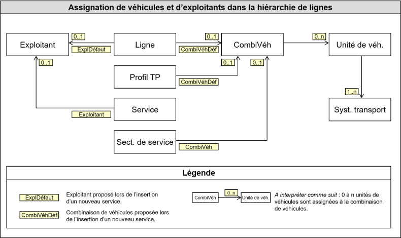 Les éléments de réseau Exploitant, Combinaison de véhicules et Unité de véhicules jouent un rôle particulier dans le contexte du modèle Exploitant. Le rapport de ces éléments entre eux et par rapport aux autres éléments de réseau est mis en évidence dans l’Illustration 185.