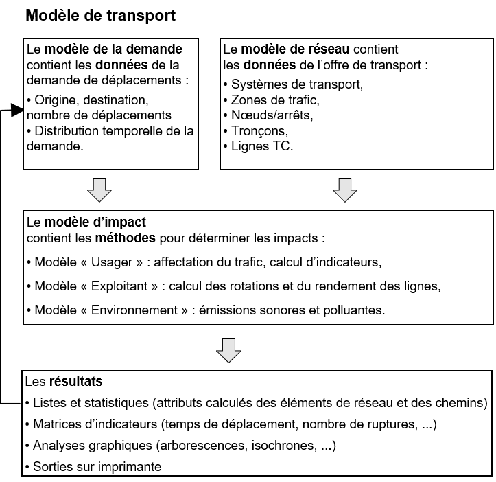Un modèle de transport représente une abstraction du monde réel. L’objectif de la modélisation est l’analyse du système, la prévision des impacts et l’aide aux décisions assistée par modèle appliquées dans le monde réel.