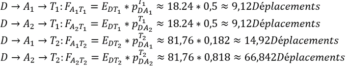 Ceci permet de calculer les déplacements du domicile vers A1 et A2.