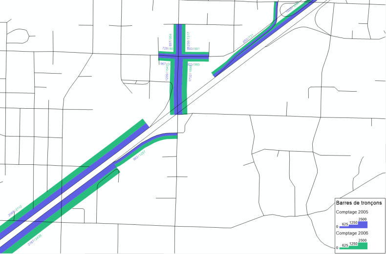- Données de comptage de tronçons pour plusieurs années (par exemple TMJ2005, TMJ2006)