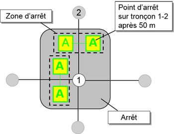 Regroupe plusieurs points d’arrêt géographiquement proches et induit l’accès des points d’arrêt au reste du réseau par un nœud d’accès.