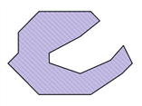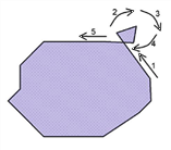 Un prétraitement du polygone de la face est requis si son bord se recoupe (voir Table 37, exemple n° 5). Dans ce cas, la face est décomposée en segments individuels non recoupés. La décomposition s’effectue de telle sorte que tous les composants ne se recoupent pas mutuellement. L’orientation des segments est conservée, ce qui signifie qu’une fioriture telle que dans l’exemple n°5 de la Table 37 est interprétée comme une face négative. Les polygones positifs et négatifs ainsi déterminés sont unis au résultat intermédiaire des faces considérées auparavant. Aucune décomposition n’est requise lorsque le bord ne présente aucun recoupement. Le polygone préexistant peut être directement uni au résultat intermédiaire des faces considérées auparavant.