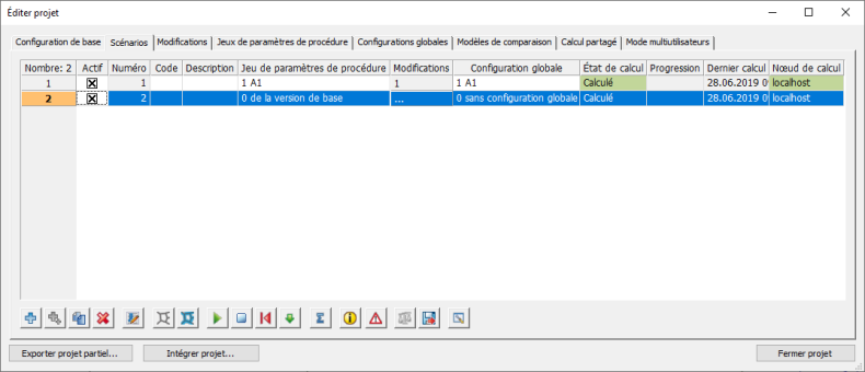 Vous pouvez comparer tous les scénarios d’un seul coup d’œil au moyen d’indicateurs à l’échelle du réseau sélectionnés. Vous définissez les indicateurs dans l’onglet Configuration de base de la vue de projet. Vous pouvez ensuite les sélectionner comme colonnes dans l’onglet Scénarios. Ceci vous permet de créer facilement une table qui contient les différents scénarios en ligne et les indicateurs en colonne.