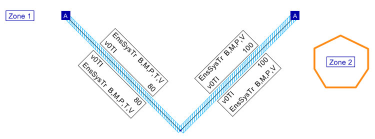 Les illustrations suivantes représentent les deux cas de figure. Le réseau 1 contient un tronçon de plus que le réseau 2, les tronçons se distinguent également par les attributs EnsSysTr et v0TI.