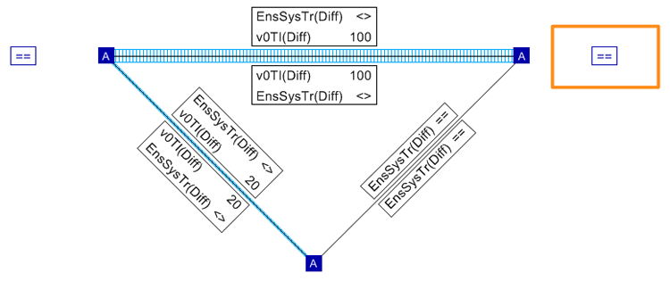 - pour les attributs alphanumériques : la chaîne de caractères "==" en cas d’égalité, "< >" en cas de divergence et une entrée vide lorsqu’un élément n’est pas contenu dans l’un des deux réseaux