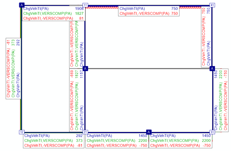Illustration 45 : Réseau avec comparaison de versions : les charges des deux versions comparées ainsi que la différence sont représentées. « Verscomp » correspond au nom de la comparaison de versions.