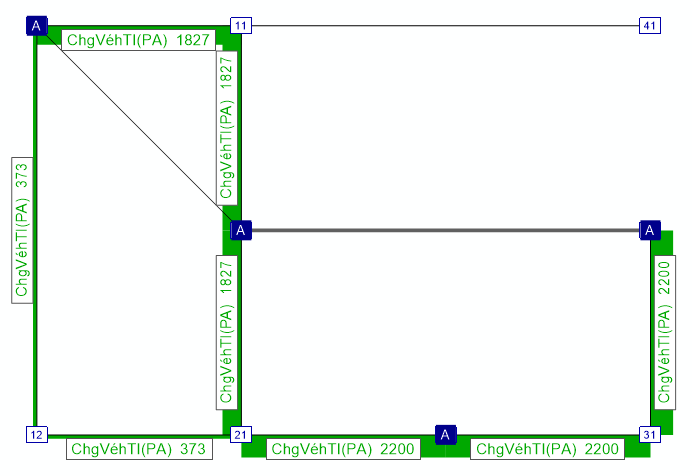 Exemple n°2 : vous avez calculé des affectations pour un réseau dans deux fichiers version différents, par exemple pour différentes données de la demande. Dans la foulée, vous pouvez comparer directement les attributs d’affectation courants, comme la charge ou le nombre de voyageurs en correspondance ainsi que les données de la demande modifiées grâce à une comparaison de versions.