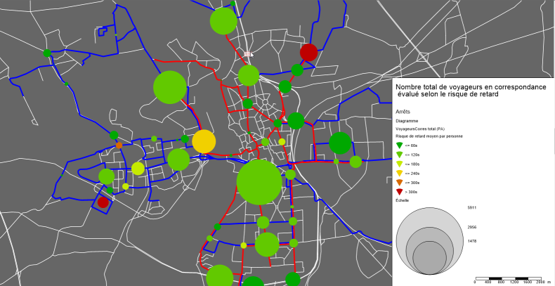 Illustration 260 : Nombre total de voyageurs en correspondance évalué selon le risque de retard